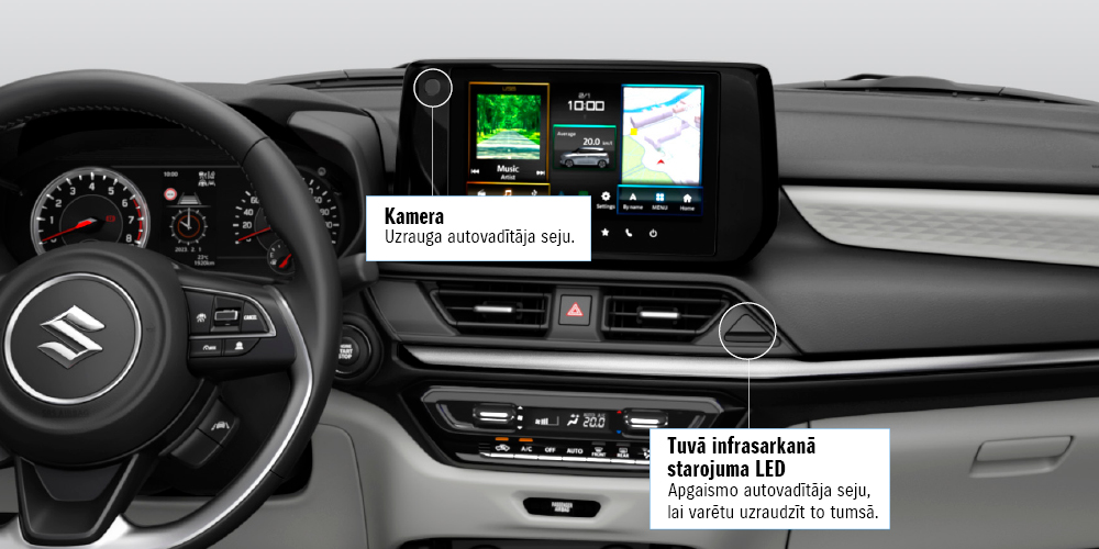 Braukšana ir vēl baudāmāka, ja zināt, ka jūs un jūsu pasažierus aizsargā jaunākie sasniegumi drošības un braukšanas palīgtehnoloģiju jomā. Jaunajā Swift to ir daudz, un tās strādā dienu un nakti, lai palīdzētu jums palikt modram un droši sasniegt galamērķi.