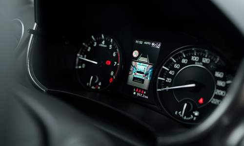 Приборная панель оснащена 4,2-дюймовым цветным мультиинформационным дисплеем, который в режиме реального времени отображает информацию о поведении и работе автомобиля: режимы движения, мощность и крутящий момент двигателя, расход энергии гибридной системы, скорость адаптивного круиз-контроля, распознаваемые дорожные знаки и многое другое.