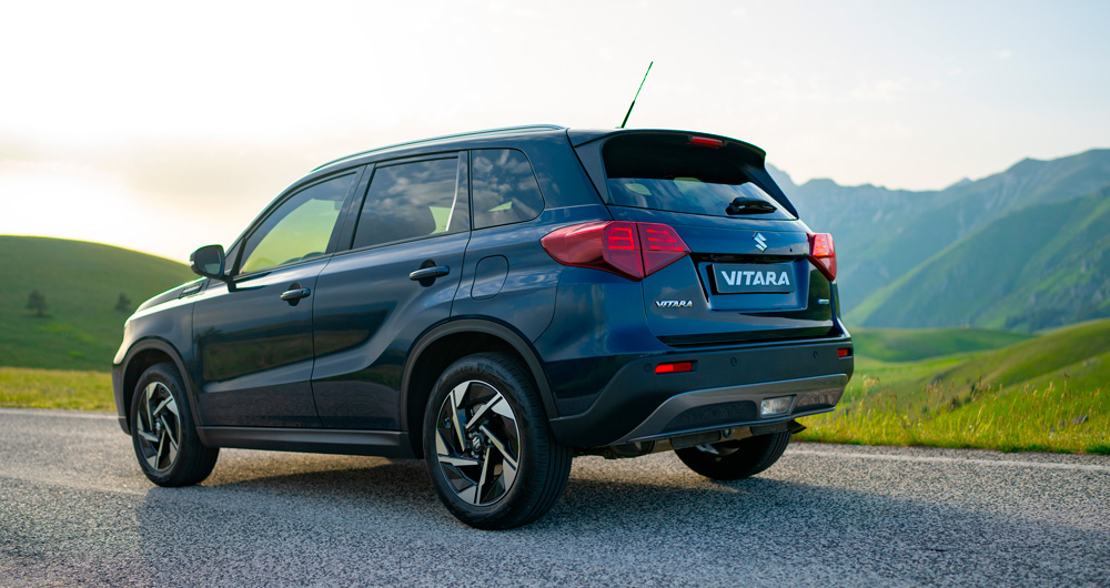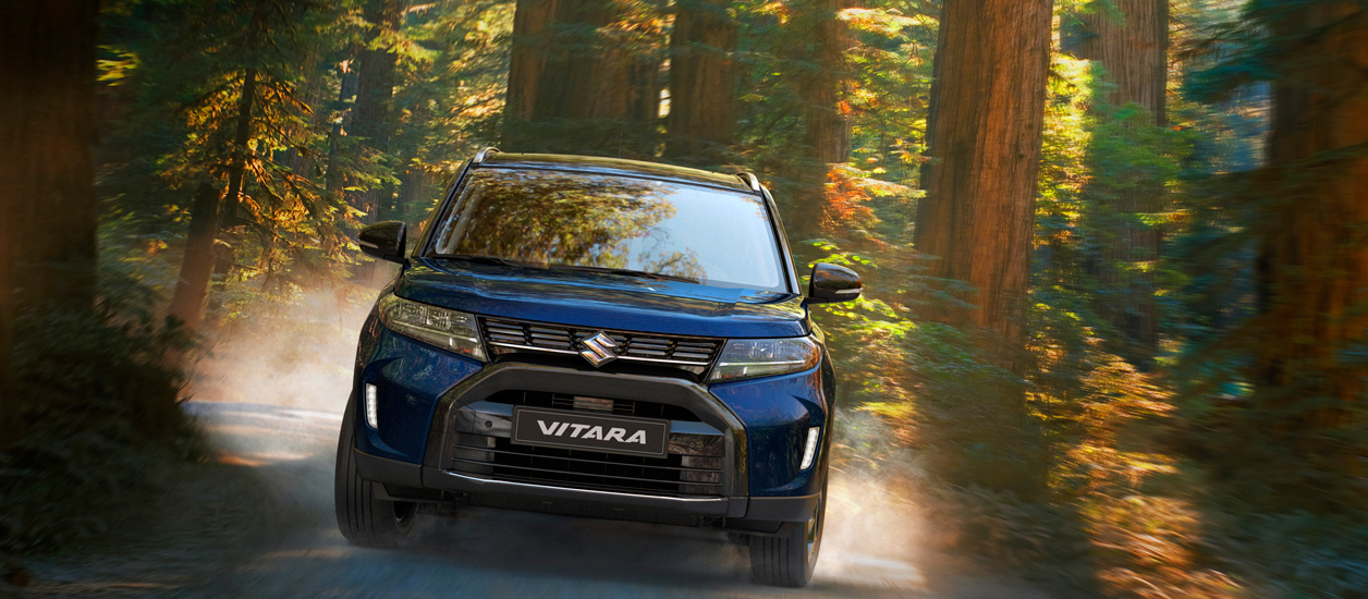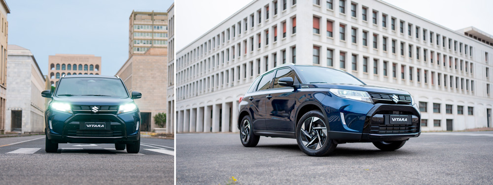 Vitara отличается агрессивной решеткой радиатора в черном цвете Piano Black, скульптурными передними крыльями и коническими светодиодными фарами, а также вздернутой линией кузова и аутентичным стилем SUV. Vitara оснащается 17-дюймовыми литыми дисками.