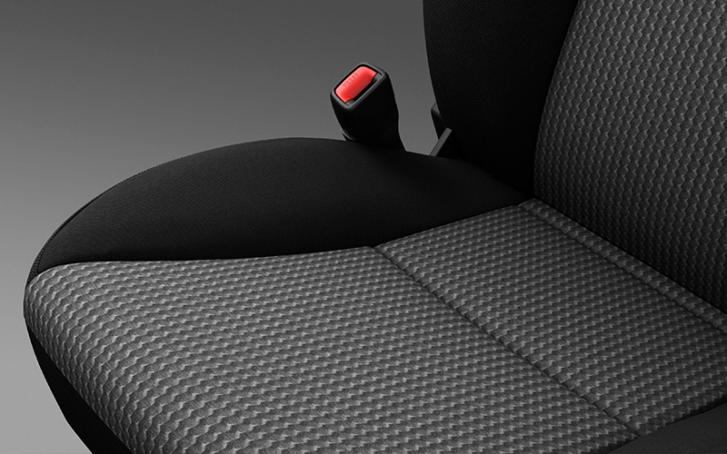 Элегантные и эргономичные кожаные сиденья по бокам отделаны натуральной кожей, а по центру — тканью из синтетической кожи с замысловатым плетением, что подчеркивает суровый характер внедорожника. Тканевые сиденья имеют такой же дизайн, при этом для центральной части используется материал с тиснением.
