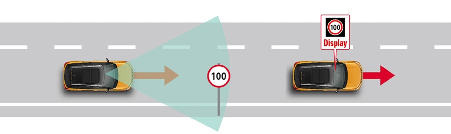 В состав этой системы входит монокулярная камера для контроля дорожных знаков. При обнаружении дорожных знаков, таких как знаки ограничения скорости или запрета проезда, этот знак отображается на дисплее, напоминая водителю о его наличии. При обнаружении нескольких знаков одновременно отображается не более трех из них.