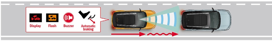 3. Автоматическое торможение – осуществляет автоматическое торможение при дальнейшем увеличении опасности столкновения.