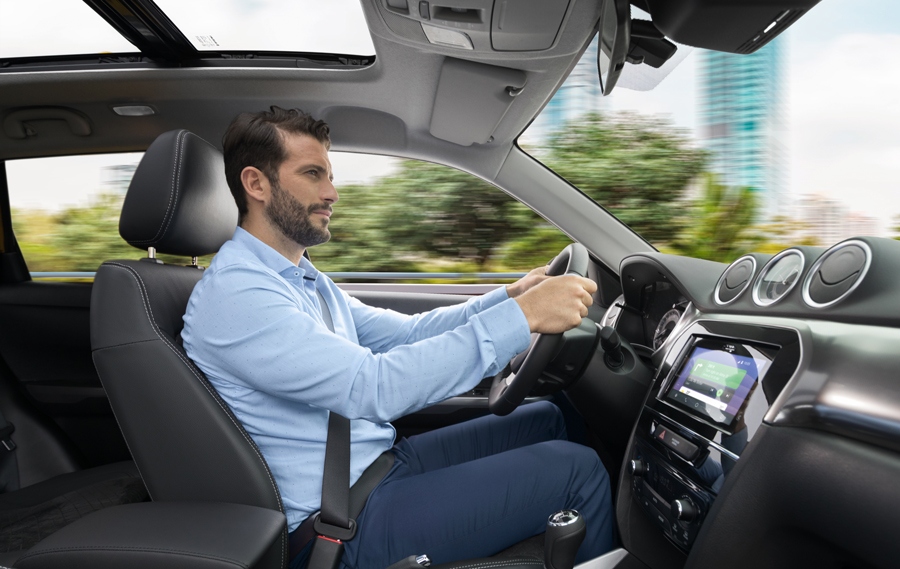Другие улучшения включают мягкую обивку над приборной панелью, более приятную на ощупь, серебристое обрамление приборной панели, дверей и центральной консоли, а также геометрический рисунок с металлическим блеском на серебристой отделке панели. Новый Vitara теперь доступен с панорамным люком*, который открывается в двух направлениях.